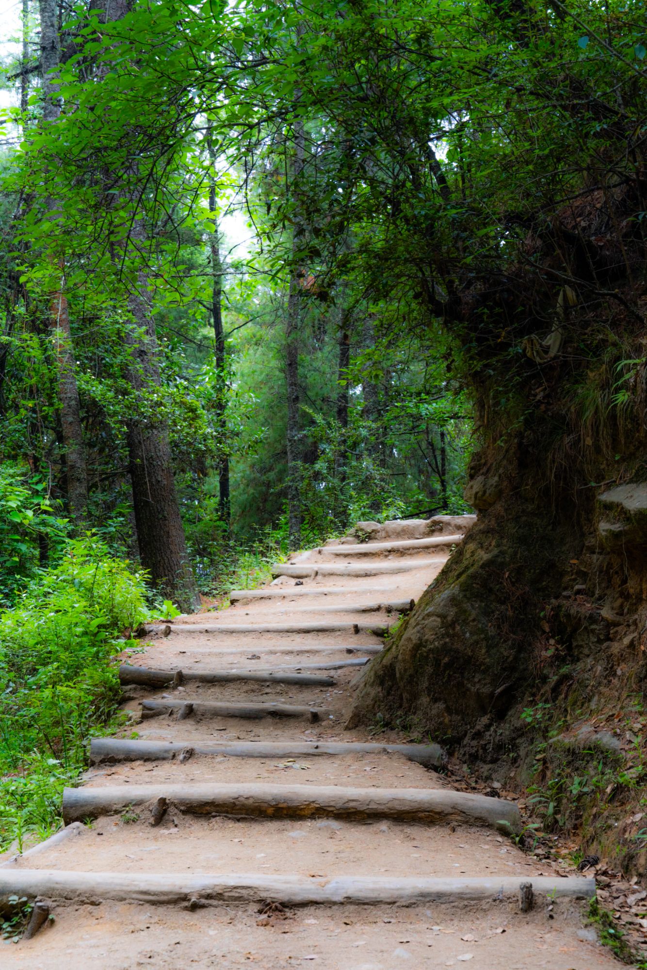 The trek was mesmerizing we ascended very quickly and the greenery around was very soothing and calming. We reached the Café in 2.5 hours and ended up spending almost an hour there resting, eating and taking pictures. The café offers majestic views of the monastery. However, it is nothing compared to the view we witnessed sometime later at the view point. After all the photo and reel session it was time to move on. The next km is relatively easy until you reach the end of the mountain and it is where the two most beautiful views are! One, of the monastery and the other of the 1000 odd steps each of almost one foot or more in length. I reached the view point and called up my family to show the view and then to Vibhuti who had missed the trek. The moment I came to reality after being flabbergasted by the view was, I have to climb back all these steps while coming back! I started my descent over the steps and the stick definitely helps you to avoid jerking your knees while getting down the huge steps. Half way there is a wonderful waterfalls and more wonderful steps which you have to climb to reach the monastery.