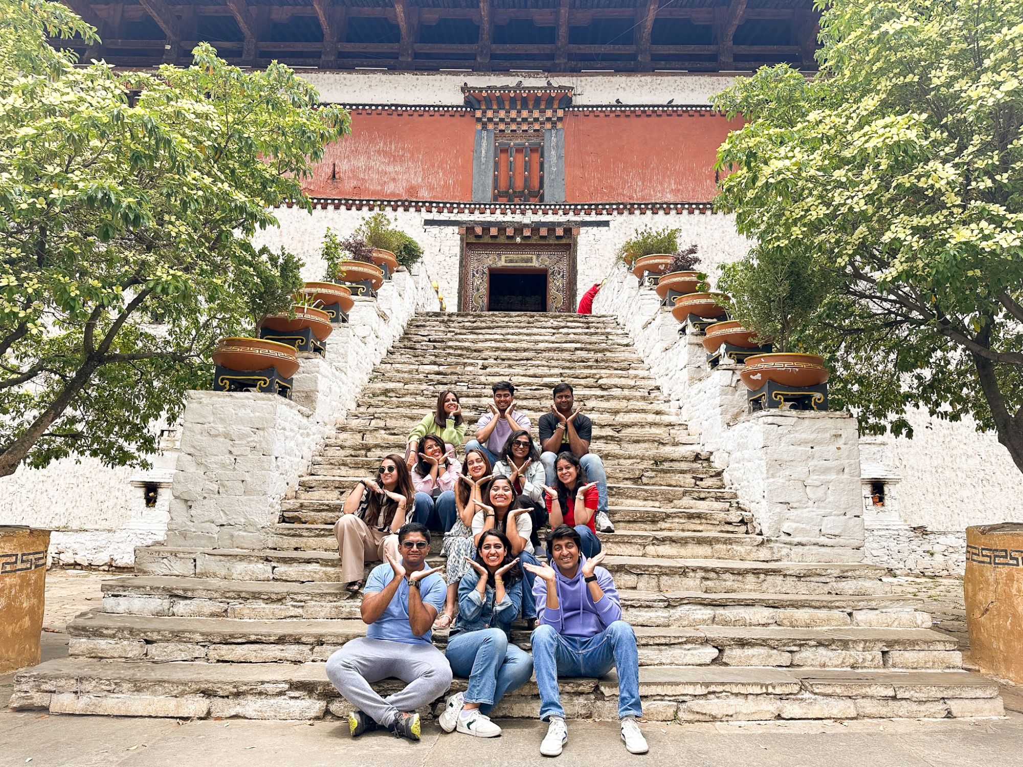 The day began early, filled with excitement and enthusiasm. But, our spirits took a slight hit. We discovered that one of our group members had fallen ill after rafting in Punakha. Our trip leader graciously stayed back to care for her (don’t worry, Guru Rinpoche will call you soon! 😊). After wishing her well, the rest of us set off on the highlight of our trip—the trek to Tiger’s Nest!