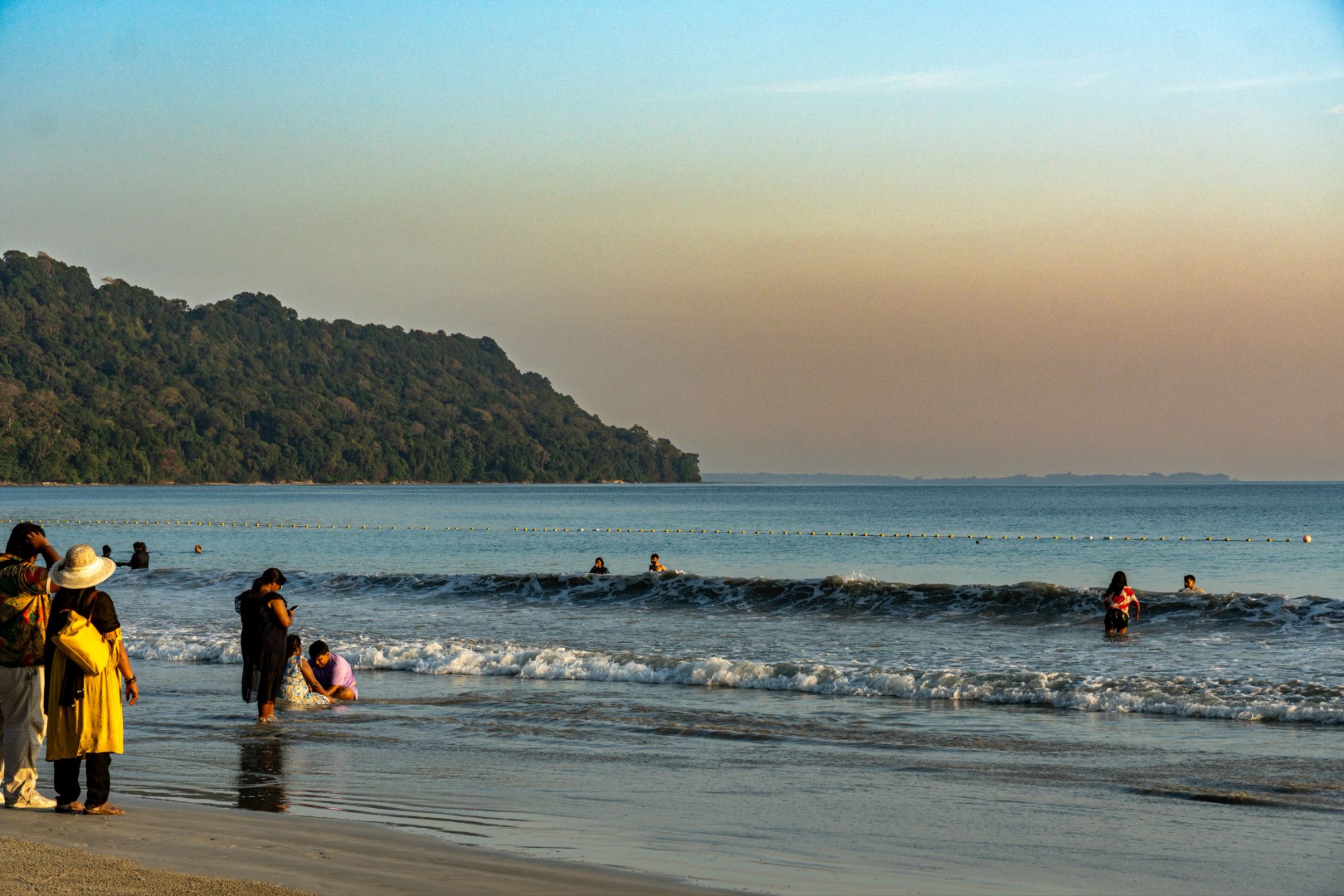 Arriving at Swaraaj Island by 2 pm, we enjoyed a relaxing lunch before heading to Radha Nagar Beach—a sunset beach noted as one of Asia’s cleanest. With its pristine white sand, turquoise waters, and lush surroundings, it’s a visual treat that simply leaves you in awe. After a memorable photoshoot arranged by the operator, some of us splashed in the water while I wandered to capture the mesmerizing sunset.