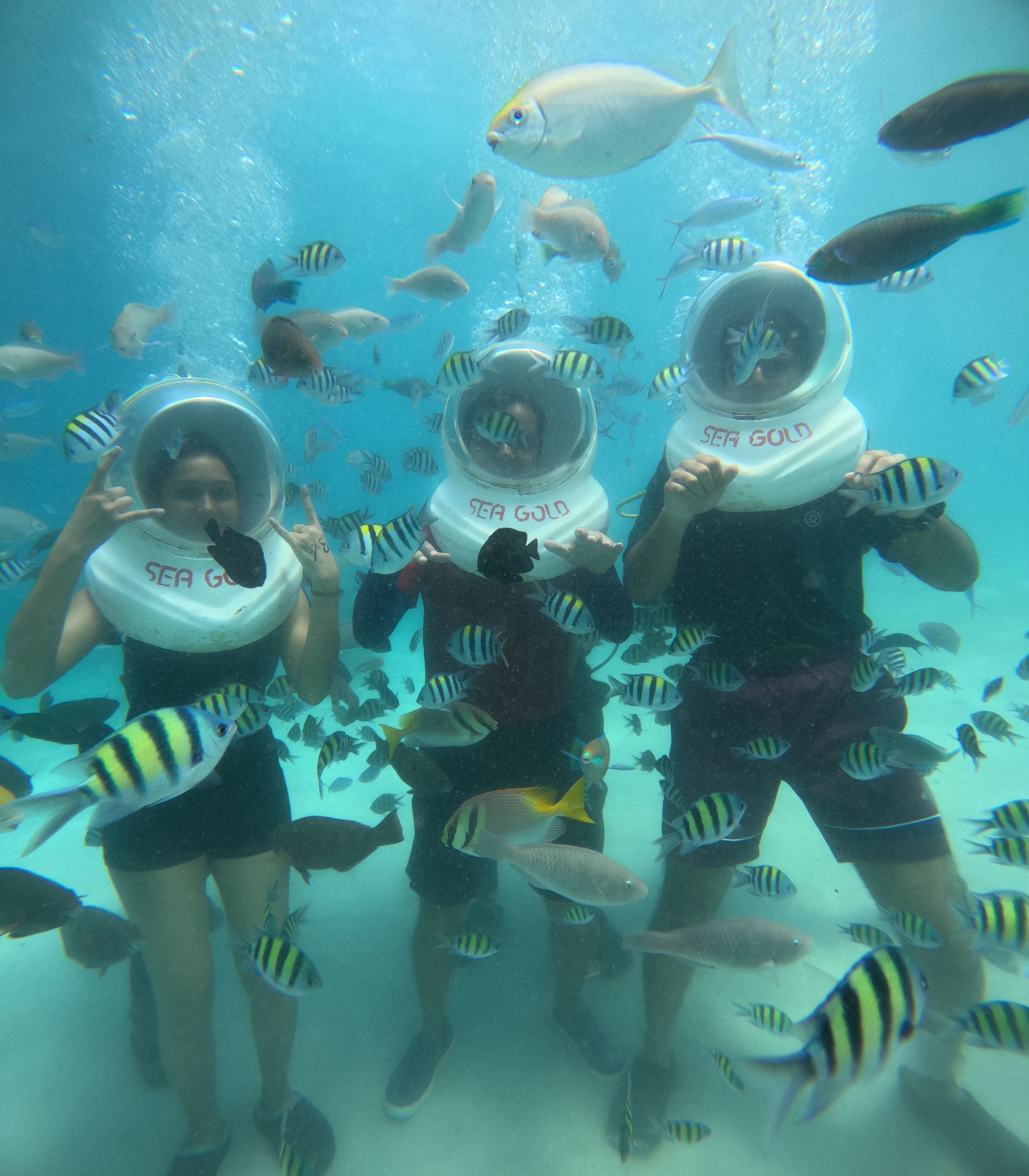My sea-walking experience was nothing short of dreamy. At around 10 meters deep, walking on the sea floor with a heavy helmet connected to a compressor—and accompanied by experienced divers—was magical. I watched vibrant marine life, fed the fish, and even touched some dead corals, all while marveling at the underwater world. (Note: Sea walking requires no prior swimming skills but does have health restrictions similar to scuba diving.)
